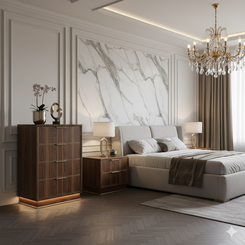 Geniş depolama alanları ile şık tasarımlar. Portmanto ve şifonyer takımları ile siparişe göre malzeme seçimi esnekliği (Lake, Akrilik, Membran ve daha fazlası).