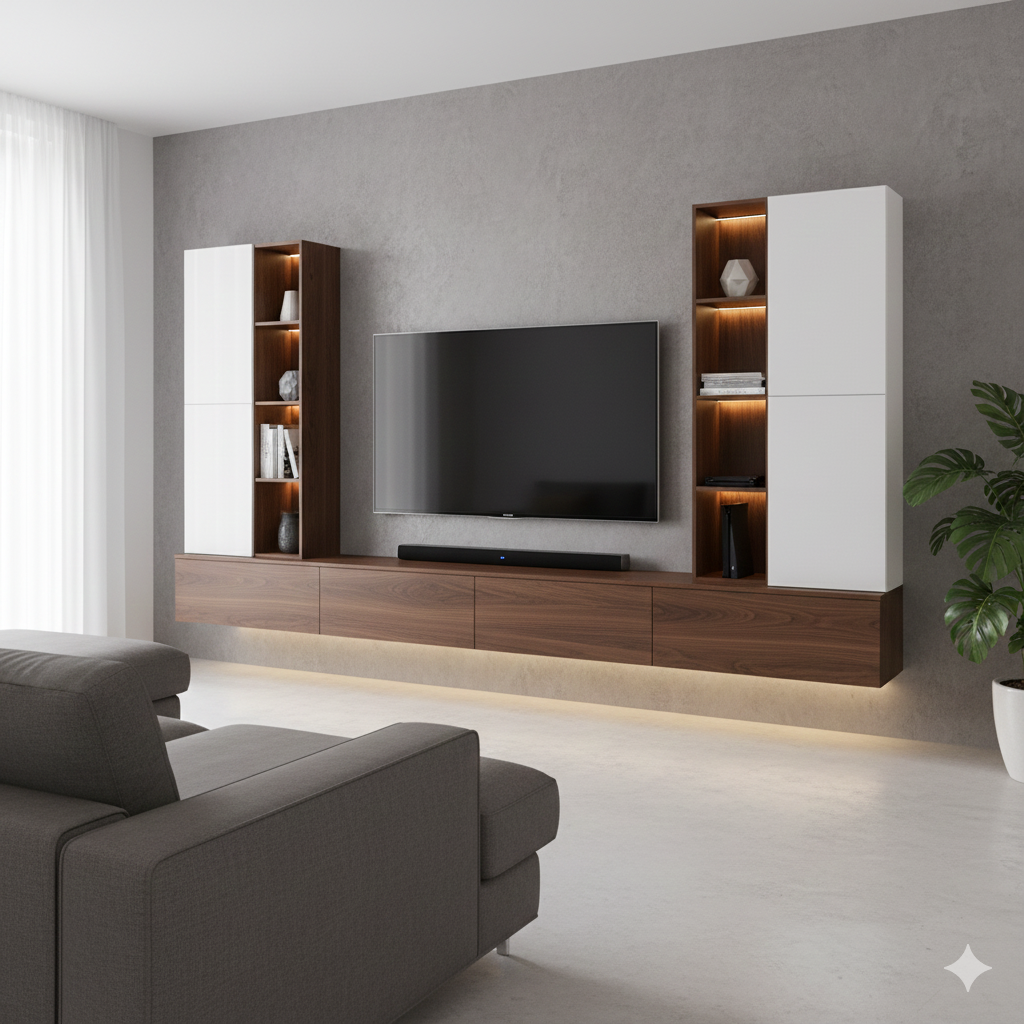 Her ünitemiz, farklı TV boyutlarına göre özel olarak tasarlanır. Kablo yönetimi, depolama alanları ve modern tasarım ile hem fonksiyonel hem de estetik çözümler sunuyoruz.